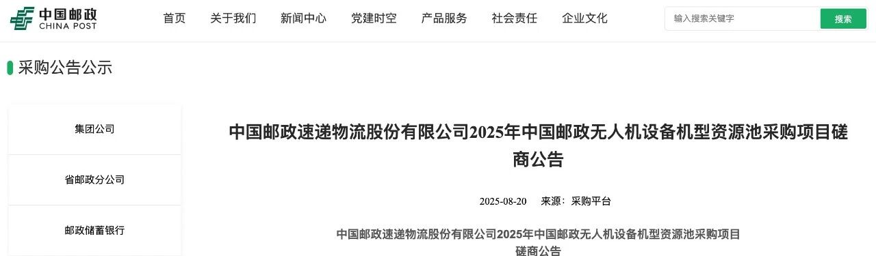 近日,中国邮政官网发布了《中国邮政速递物流股份有限公司2025年中国邮政无人机设备机型资源池采购项目(项目编号:0747-2560SCCZAB336)入围候选人公示》,其中协氢(上海)新能源科技有限公司成功入围!